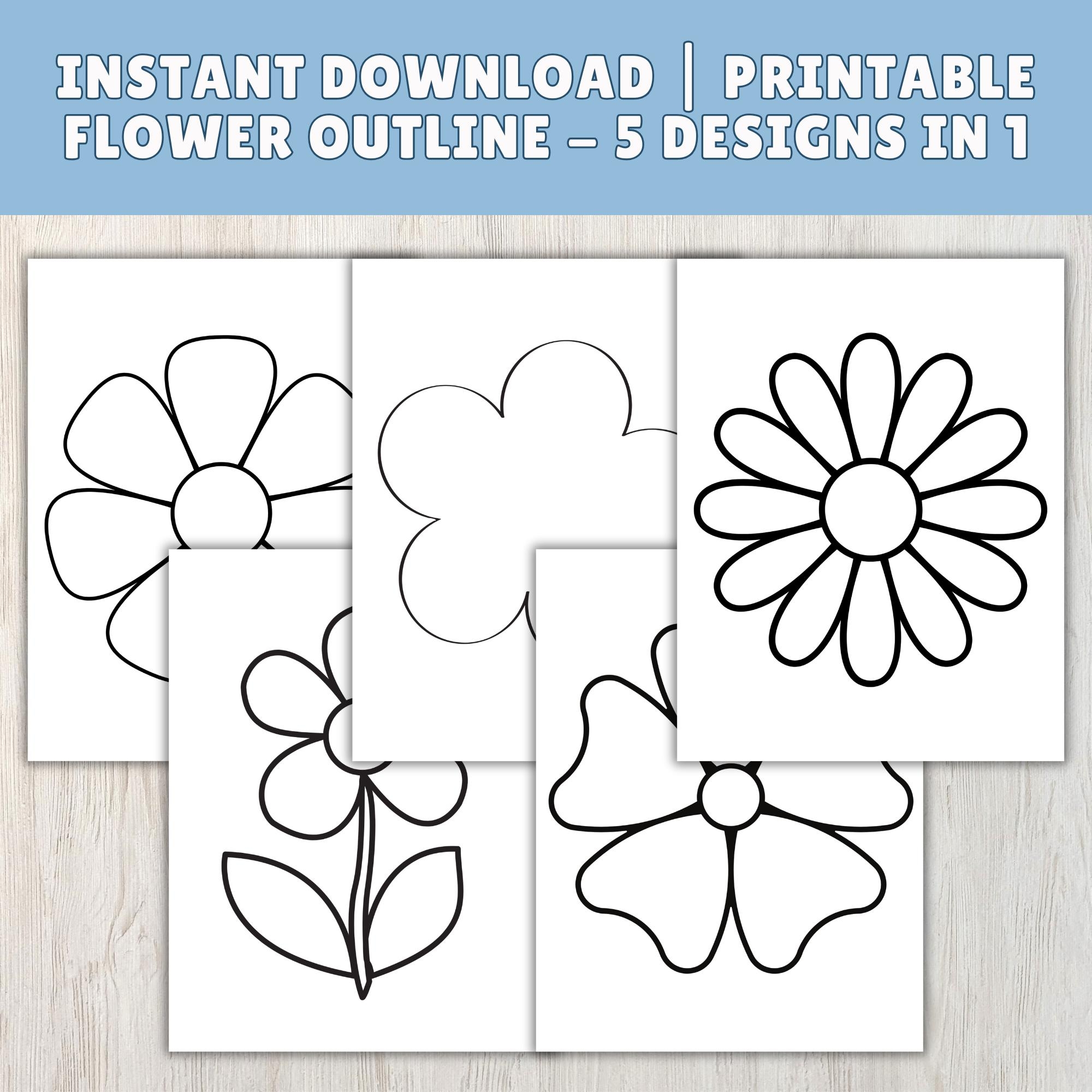 Printable Flower Template PDF 5 Flower Coloring Page Spring Crafts Flower Stencil Lineart Kids Crafts Digital Download Teacher Template Etsy