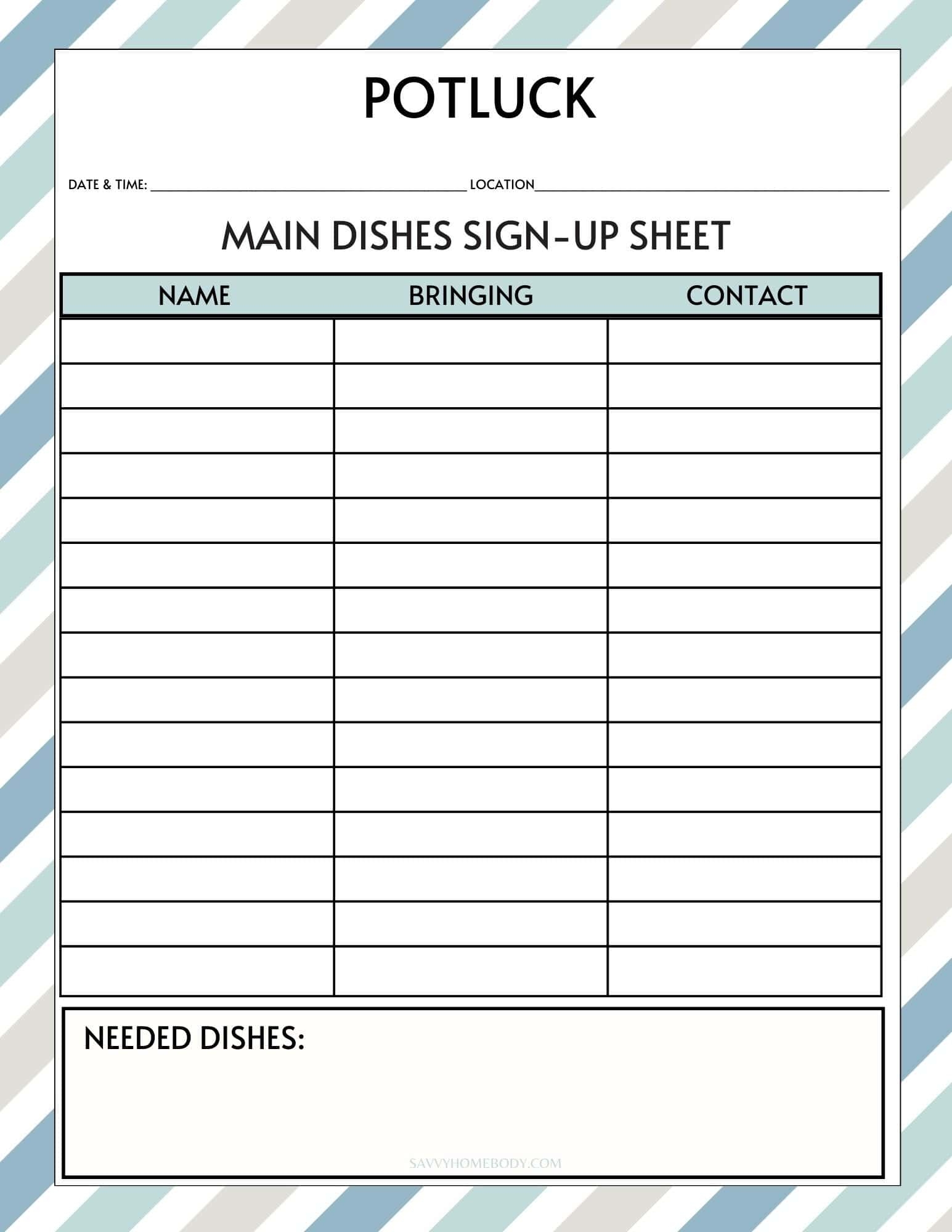 Free Printable Potluck Sign Up Sheets